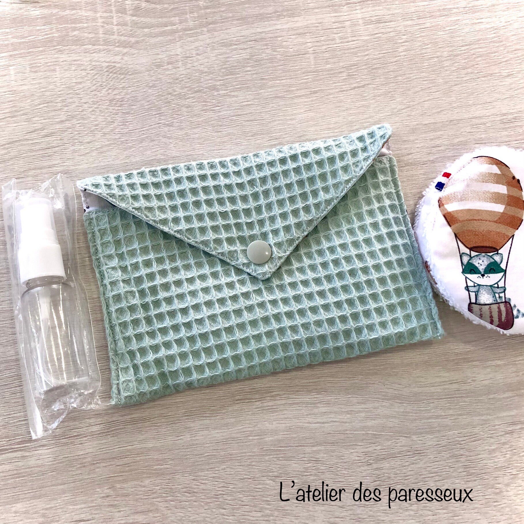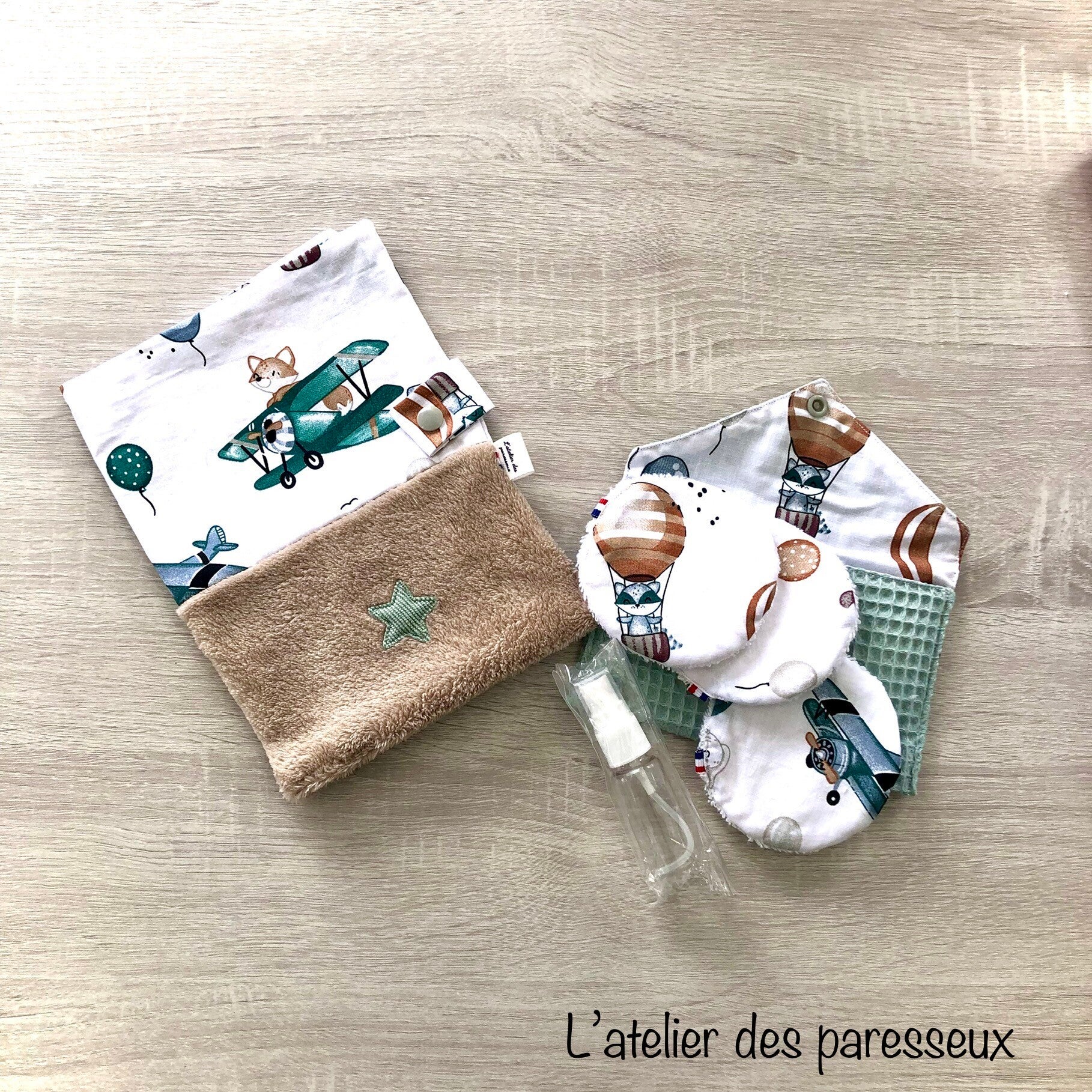 * Le kit contient une pochette avec ses trois lingettes lavable ainsi que le spray. Le protège carnet de santé et le bavoir sont vendus séparément